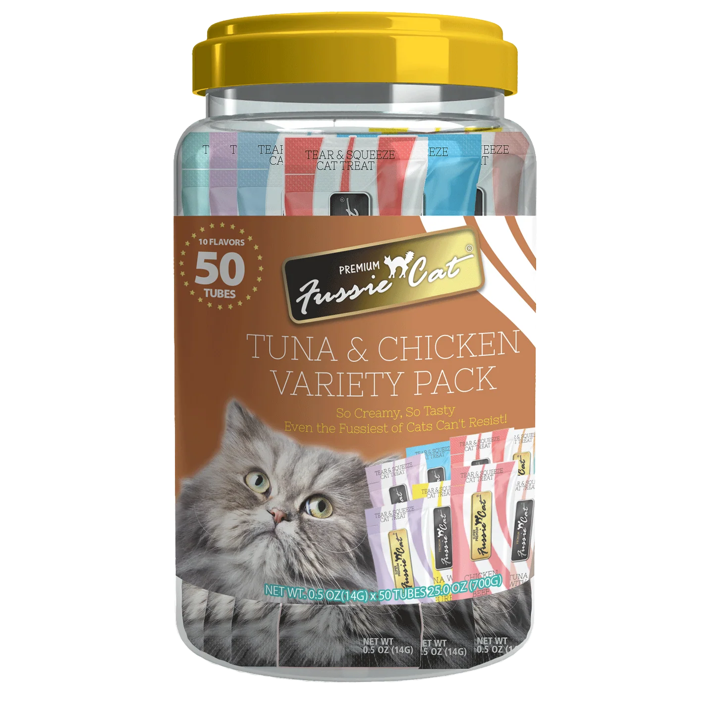 Fussie Cat Tuna & Chicken Variety Pack - 50 Tubes Share WhatsApp Deel X Pin it Messenger Email Product form Free pickup in our shop(s) Free pickup in our shop(s) 12 in stock $39.99 Quantity Add to cart This item is a recurring or deferred purchase. By continuing, I agree to the cancellation policy and authorize you to charge my payment method at the prices, frequency and dates listed on this page until my order is fulfilled or I cancel, if permitted.