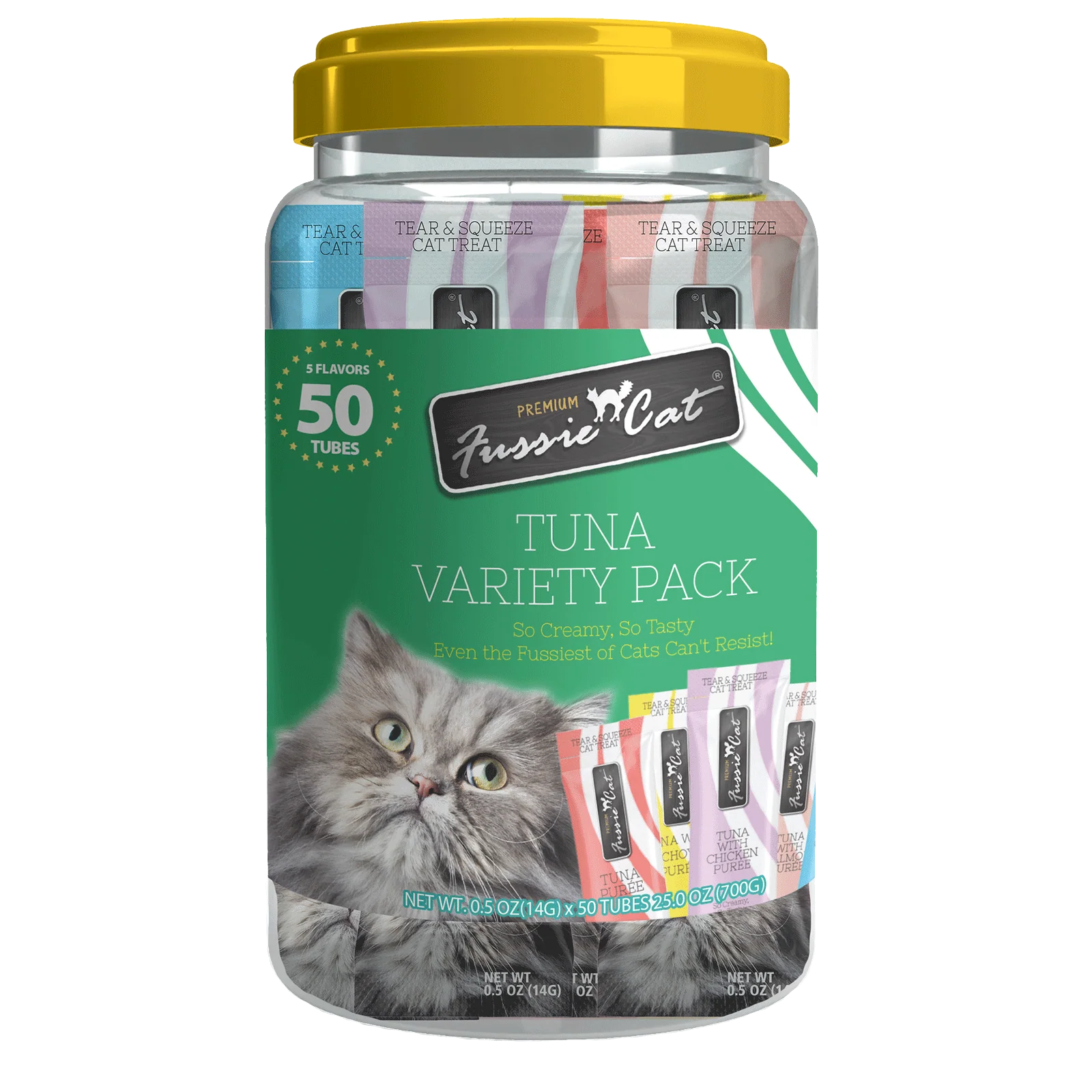Fussie Cat Tuna Variety Pack - 50 Tubes Share WhatsApp Deel X Pin it Messenger Email Product form Free pickup in our shop(s) Free pickup in our shop(s) 11 in stock $39.99 Quantity Add to cart This item is a recurring or deferred purchase. By continuing, I agree to the cancellation policy and authorize you to charge my payment method at the prices, frequency and dates listed on this page until my order is fulfilled or I cancel, if permitted.