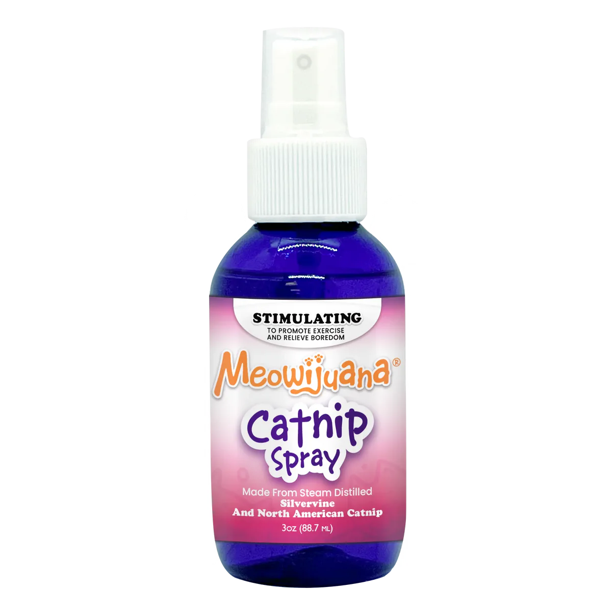 At Meowijuana®, we know cats deserve the best of every one of their nine lives! With our purr-fect catnip spray, your feline friend is just a spritz away from pure bliss. This catnip and silvervine blend takes playtime to the next level, transforming scratchers, beds, and toys into a whole new playground. A quick spray of catnip spray turns any spot into an irresistible adventure zone, filled with the magic of catnip and silvervine. Whether they’re pouncing, rolling, or curling up for a cozy nap, cats can’t resist this enchanting catnip spray. Watch as they fall in love over and over — it’s truly a nine-lives experience!