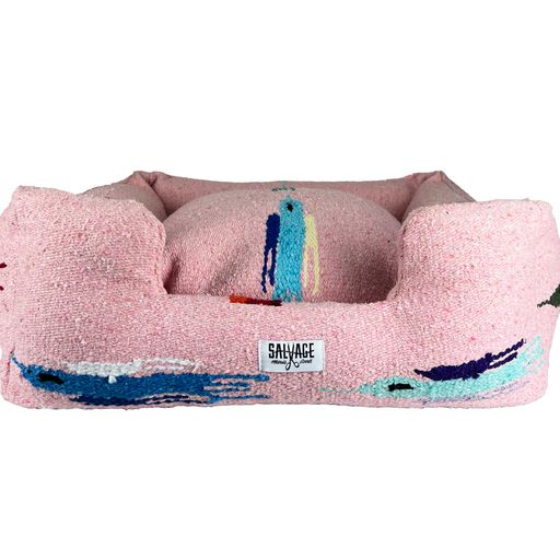 We're bumping up the bumper bed style! Each bed is made from our beautiful handwoven Thunderbird Mexican blankets. The yarn from these beautiful hand loomed blankets is made from recycled clothes, chopped up into fiber and hand spindled. Your pet will look so boho-chic curled up in all this vibrant special gorgeousness!